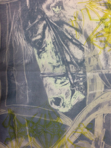 I am planning to create a variety of screen printed patterns inspired by the use of horses within our society and how they have been affected by urbanisation. I really want to capture the strength and great power of the horse as well as their elegance and grace through a mixture of repeat and placement patterns. The journey through my collection will start very nostalgic and subtle, reflecting my childhood with horses, and then it will progress into more dynamic and dramatic motifs/patterns as horses merge into urban life and the structure of buildings interact with the horses, reflecting their strength.”