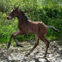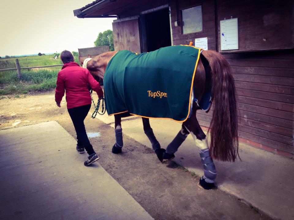 | St Sheri, (Sir Caprimond x Seven Percent – Double Agent’s Grand Dam) now stands about 16.2hh as a 2yr old, so she is going to be a big girl! St Sheri was bought this spring from Morgan Equine. She is enjoying life, meeting cows and learning about how to becom a Para horse.
