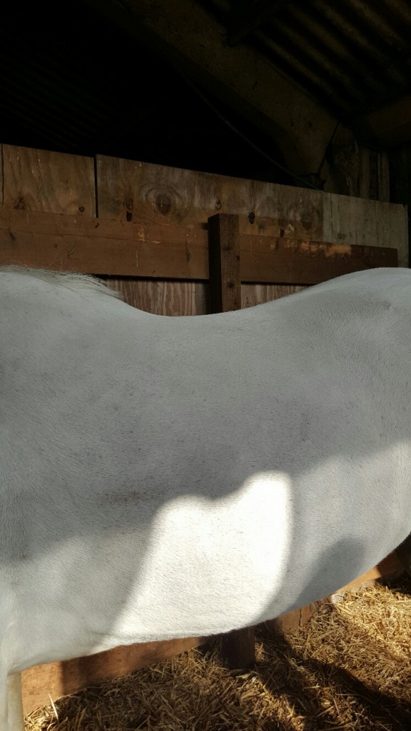 ‘Fanny’ is now enjoying a slight career change and has been show jumping more recently and in regular training so time for a saddle change to a Loxley Jump LX. Visiting her yesterday I was thrilled to see how well she has developed, although her overall width hasn’t changed considerably the visual prominent withers have disappeared somewhat as she has filled out nicely behind the scapula with little atrophy, her back has also come up and strengthened so the differential is not so significant either. Really pleasing changes to see on a horse of this size, which I would attribute to a well fitting saddle with wool panels that has allowed her to develop and great training.