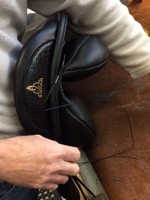 I chose a plain back saddle but couldn’t resist a little jazz. I had a black crocodile cantle cut and a gold