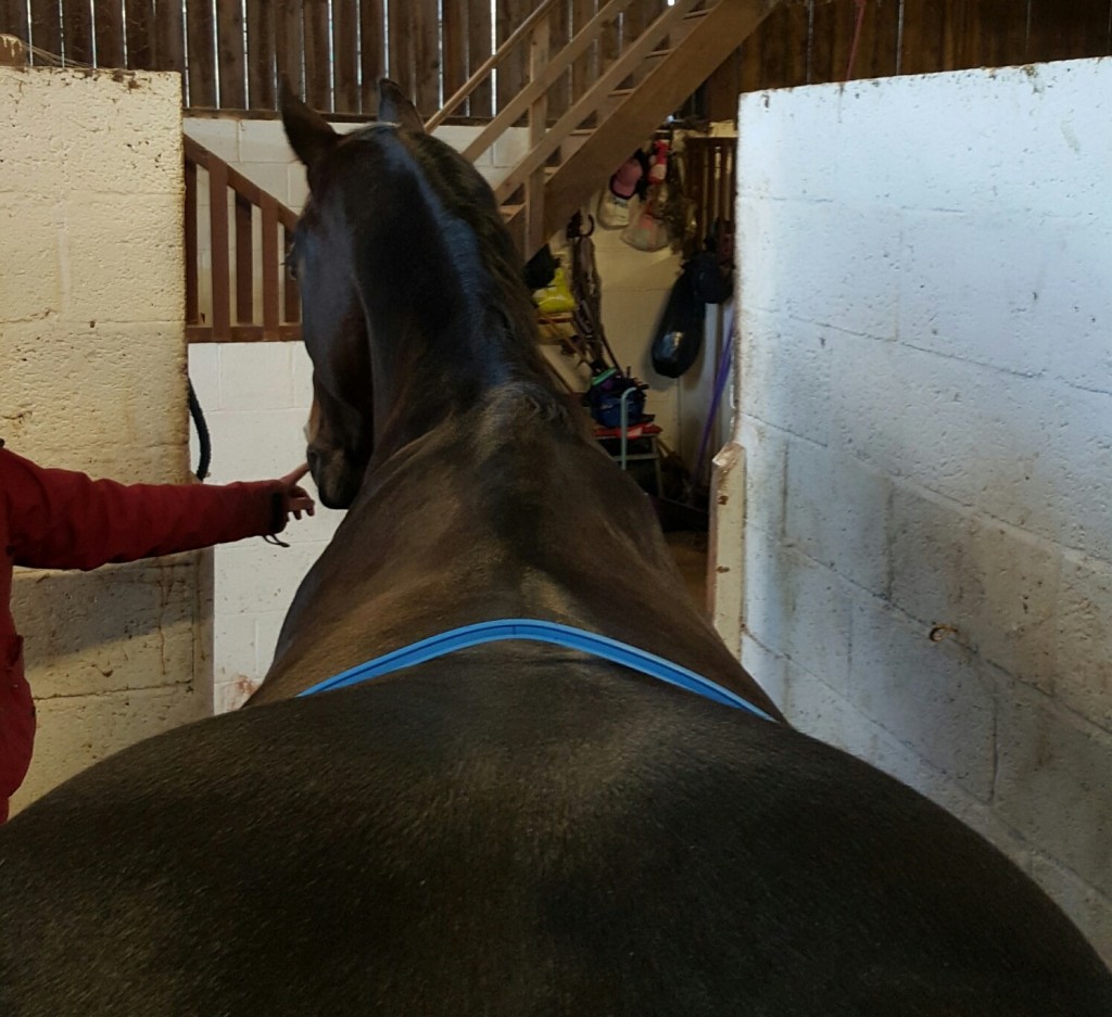 We took with us the Loxley Foxhunter, the Loxley Jump LX, the Foxhunter Monoflap and the Jump Monoflap. We started off with the Loxley Jump LX, Nikki checked the fit of the saddle without a pad underneath. Checking how the saddle sat at the front; the clearance and width, then moved to check for any bridging and checking the overall balance. Once we were happy this saddle would be comfortable for Rambo we popped a thin pad underneath and girthed it so I could see how it felt for me. Pictures are generally taken along the way to refer back to if needed. Luckily for me Rambo isn’t far off a Medium Wide.