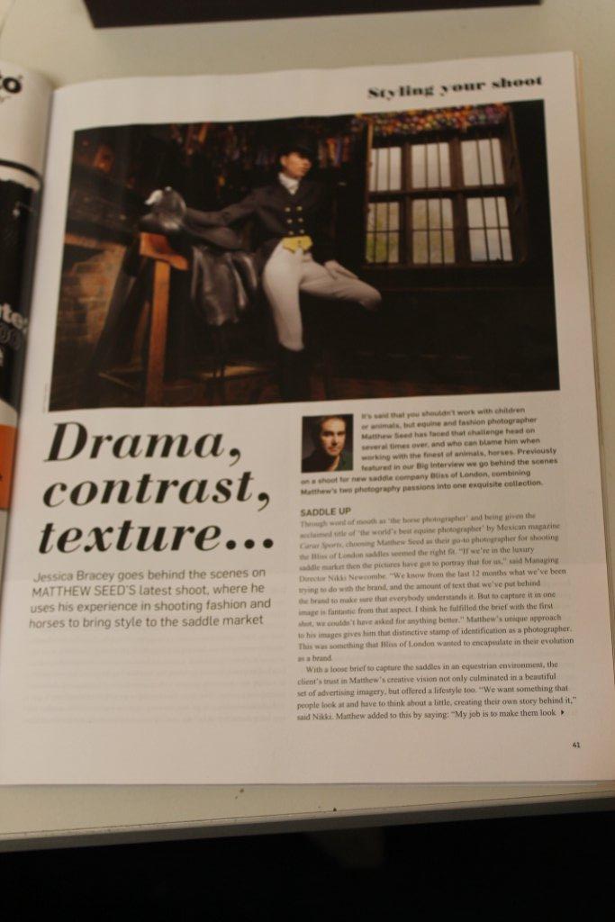Professional photographer magazine came down to our saddle shoot for Bliss Of London recently and interviewed Matthew Seed - The Horse Photgrapher. “Matthew has been called the world’s best equine photographer, and let us shadow him on a campaign shoot for this month’s style feature” PP magazine.
